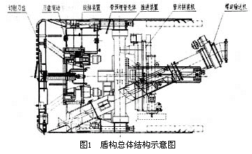 图1为北京地铁加泥土压平衡式盾构总体结构示意图。