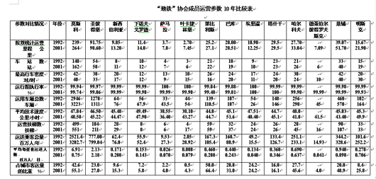 时至今日,地铁在新环境下运作已经十年,还可见到某些运行技术性能在变差。独联体国家地铁十年间主要运行技术参数对比列于附表中。