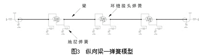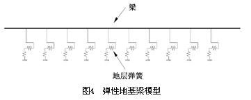 第二种是以日本志波由纪夫为代表的等效连续化模型[11]。等效连续化模型认为隧道在横向为一均质圆环,在纵向以刚度等效的方法把有接头的隧道等效为连续均质圆筒,得到均质圆筒的刚度以后,隧道就可以简化为具有等效刚度的均匀连续梁,再以弹性地基梁为基础,通过修正弹性地基梁的计算参数进行计算(图4)。这种方法缺点是认为隧道是弹性地基上的直梁。但这种方法概念明确,计算相对简单,也较符合隧道与土共同作用的实际情况。通过改变计算参数能够适合各种地质条件及工况,可以直接给出管片和螺栓应力,容易为广大工程技术人员掌握,是研究隧道纵向结构性能的较好方法。