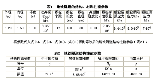 上海地铁1号线区间隧道的结构参数和材料参数见表1。