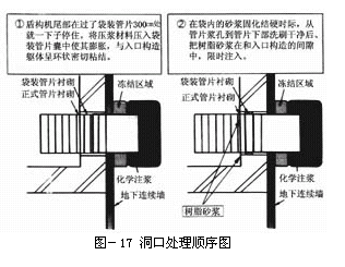 考虑上述原因,使用袋装管片(RC管片袋囊)和树脂砂浆来实施洞口止水(图-17)的。