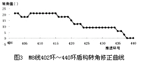 盾构产生转角后,管片也逐渐发生相同方向的偏转,从而造成管片姿态的不良,并且管片偏转的修正比盾构机纠偏更加困难。