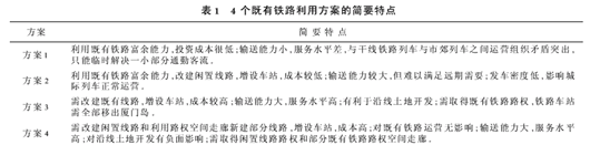 (3)本岛东部和杏林北部区域的土地低密度利用状况将难以得到改变。(4)由于嘉禾路和厦禾路已经没有可实施开发的余地,因而难以通过实施沿线开发来筹措建设资金,因此1号线项目的建设资金只能依赖于政府财政资金。(5)如果上述方案的1号线(岛内段)与利用既有铁路的市郊列车线同时存在,两者之间的竞争将大大降低城市轨道交通的投资效率。 为此,建议将2001年提出的厦门市轨道交通线网规划推荐方案中的1号线(岛内段)线路走向方案改为:海沧中心———和平码头———沿既有闲置铁路至厦门火车站———沿既有铁路至厦门北站(见图2);新的1号线自厦门北站沿既有铁路跨海终止于厦门西站,以充分利用铁路闲置线路、铁路设施能力或既有铁路的空间走廊。这样既可以克服原方案的缺陷,又为1号线建设资金的筹集找到一条切实可行的渠道。2既有铁路利用方案研究 厦门地区既有铁路和平码头站———厦门火车站区间全长5.3km,目前已经闲置。杏林站———厦门火车站区间全长20km,福厦铁路建成后,该区间将增建二线,主要运行鹰厦线、福厦线客车以及进出岛内的小运转列车,复线后区间能力有一定的富余;杏林站———厦门西站区间只运行福厦线的客车,能力有一定的富余;厦门火车站———前场站———东孚站区间目前已经开行市郊列车。上述既有铁路区间能力的富余,为开行市郊列车创造了一定的条件[3]。 根据厦门地区既有铁路状况及我国铁路管理体制现状,并结合厦门市城市发展实际需要,以福厦铁路建成为背景,提出以下4个既有铁路利用方案。2.1方案1:开行大站距市郊列车与利用城际列车相结合的方案 该方案在不改建既有铁路和不影响既有铁路运营的前提下,利用既有铁路富余能力在厦门西站———厦门火车站区间开行与城际列车停站方式相同的大站距市郊列车,中途停靠厦门西站、杏林站、厦门北站、厦门站;同时利用城际列车的站位空间来解决部分城市客流需求。 如果铁路部门能够根据厦门客流需求情况,在高峰时段适当增开市郊列车,且公共汽车等城市道路交通系统又能与市郊列车很好地衔接,则该方案将能在短时期内以极低的成本,部分解决厦门岛内外区域之间的通勤交通问题。根据初步测算,该方案在一定条件下的单方向高峰小时、高峰断面输送能力可以达到4200~6600人。2.2方案2:开行小站距的市郊列车方案 该方案利用既有铁路富余能力及和平码头站———厦门火车站区间闲置线路,开行厦门西站———厦门火车站———和平码头站区间的小站距市郊列车。初步设想沿途设置厦门西站、杏林站、厦门北站、火炬路站、仙岳路站、莲花新村站、莲前西路站、厦门站、万寿山站、植物园站、思明南路站、和平码头站。根据铁道第二勘察设计院的研究成果[4],上述区间的实际运行图铺画的能力可以达到101~107对/天。在开行8对快运货物列车、11对货物列车的条件下,全天可以开行84~90对旅客列车。而根据文献[3]的数据,2008年、2010年、2015年铁路客车需求对数分别为31、35、67对。从全天平均来看,至少在2010年前后的铁路富余能力是比较大的。因此,如果铁路部门在高峰时段的7:00—8:00及17:00—18:00内,以组织开行厦门西站———和平码头站区间的市郊列车为主,且公共汽车等城市道路交通系统又能与市郊列车很好地衔接,则该方案将能在较长时期内以较低的成本解决厦门岛内外区域之间的交通问题。该方案2010年的旅客输送能力分析如下:(1)如果高峰小时开行市郊列车8对、10节编组,以每辆车载客300人计,则单方向高峰小时断面输送能力可以达到24000人次左右。(2)如果每天开行市郊列车55对、10节编组,以每辆车载客250人计,则每天单方向高峰断面输送能力可以达到13万人次左右。(3)如果能够保证城际列车等中长途列车在厦门西站———厦门站区间内不越行市郊列车,则从理论上讲,在6:00—23:00时段内,该区间的旅客列车追踪通过能力将可以达到127对。考虑到市郊列车与长途列车之间的衔接需扣除20%的能力,则每天能够开行旅客列车的对数将达到105对。这样,010年可实际用于开行市郊列车的能力将达到70对。因此,如果每天开行市郊列车70对、6节编组,以每辆车载客250人计,则每天单方向高峰断面输送能力可以达到10.5万人次左右;而如果每天开行市郊列车70对、10节编组,以每辆车载客250人计,则每天单方向高峰断面输送能力可以达到17.5万人次左右。 但是,根据铁路部门预测,2015年上述区间既有铁路的客车需求对数将达到67对,那么,即使按最理想状况考虑,2015年可实际用于开行市郊列车的能力最多只能达到38对;如果按10节编组、每辆车载客250人计算,则每天单方向高峰断面输送能力只能达到9.5万人次左右,难以满足厦门岛内外的远期轨道交通客流量需求。 综上所述,方案1和方案2将在一定时期内能够以较低的成本、较好地解决厦门岛内外区域之间的交通问题,但难以从根本上满足交通需求。另外,方案1和方案2的最小发车间隔均需要8min左右,此服务水平是难以令人满意的,因而也将难以很好地促进沿线土地的高密度开发。2.3方案3:将既有铁路改建成城市轨道交通方案该方案将厦门西站———厦门火车站———和平码头站区间改建成厦门城市轨道交通1号线,其车站设置的初步设想与方案2相同。 该方案可以完全按照城市交通需求来确定城市轨道交