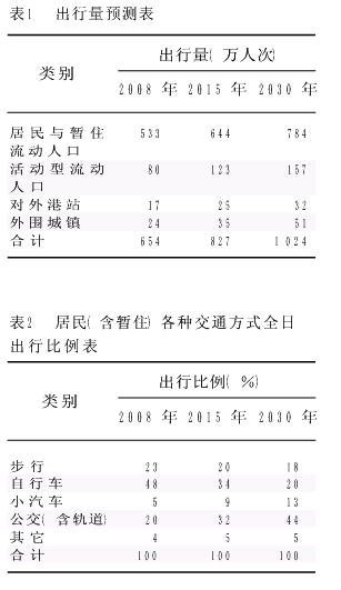 考虑到地铁建设对沿线的土地开发、城市建设及人口分布会产生影响,对于常住人口的客运交通需求,要分析研究对象区域的人口、就业及用地情况的变化,在此基础上进行出行产生预测;对于旅游城市,通过分析影响旅游需求的主要因素与旅游需求的关系,建立旅游需求的预测模型,对未来旅游需求的吸引总量进行预测(表1)。