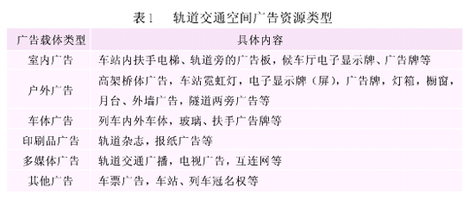 城市轨道交通广告资源经营管理研究摘要:对城市轨道交通空间广告资源的特征及其构成进行了分析,归纳了轨道交通空间广告资源经营原则,讨论了广告资源的经营方式,并重点探讨了如何利用广告资源进行融资,对武汉市轨道交通空间广告资源经营提出了初步建议。关键词:城市轨道交通;广告资源;经营管理;融资 城市轨道交通空间广告,属城市广告的范畴。轨道交通空间广告资源,是指存在于轨道交通空间,主要以在轨道交通空间活动的人流为广告受众群体的各种广告载体的集合。合理高效地利用轨道交通空间广告资源,将为轨道公司带来可观的收益,弥补后期轨道建设或运营资金的缺口,同时对活跃城市经济、促进城市商业繁荣起着不可忽视的作用。有效地对轨道交通空间广告资源进行规划和控制,可使之成为城市景观的一道靓丽的风景线,对城市景观组织发挥着重要的作用。1轨道交通空间广告资源的特征 轨道交通空间广告资源,与其它类型广告资源相比,存在一定的优势,具体表现为: (1)广告受众群体比较稳定,具有高收入、高消费的特征,对于浏览广告、购买商品具有独特的爱好和见解,是城市主要的消费群体。 (2)轨道交通广告媒体是唯一可以通过大量及稳定的客流量来衡量广告效应的媒体。一般来说,从进入站点开始,目标受众群体即在这种封闭的环境中无选择地浏览广告信息,其广告效果远远超过其它媒体。根据国际广告杂志社和IAI国际广告研究所对北京地铁广告的相关调查显示:轨道交通广告注意度相当高,甚至有71.2%的乘客能够注意到地铁广告的更换。 (3)广告载体形式多样,可以制作画面独特、新奇、易于接受的广告作品。如可口可乐公司曾在亚特兰大地下长达270 m的地铁隧道两旁树立灯箱广告牌,将广告内容按顺序排列。当地铁飞驰而过时,广告灯箱上的内容会像书页一样自己滚动发展,连贯成一个个跳动的画面,很有动感,过目难忘。2 轨道交通空间广告资源的构成 对轨道交通空间而言,广告资源的形式表现为多方面,按广告传播的媒介分类,主要有户外广告、车站内广告、列车内广播、电视媒体等;如果运营良好,还可设置轨道交通报纸广告、杂志广告、电台广告等。具体来说,轨道交通广告资源类型可如表1所示。