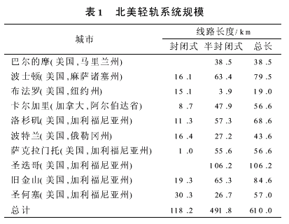 表1中列出了美国和加拿大轻轨系统的规模状况。从中可以看出,封闭式轻轨系统的比例只占全部线网里程的19%,绝大部分的轻轨系统采用了半封闭方式。半封闭式线路虽然可以加强线路两侧区域的相互联系,但同时也对运输效益和安全带来了影响。 在美国和加拿大地区,通勤铁路也曾经是非常繁荣的实业。与轻轨系统相比,通勤铁路的车辆体积较大,但它的每人公里的运营成本却比较低。美国铁路运输准则一般不允许传统的铁路列车与轻轨列车共线运营。但从发展方向看,可以期待轻轨系统与其它轨道交通方式之间实现共线运营,以带来更大的规模效益。2魁北克的城市与城际轻轨系统 评价一条交通通道的效益,主要取决于它服务的人口数量及途经区域中有多少个城市副中心(卫星城),还有公众的舒适度(包括交通出行的舒适度和整体环境的舒适感)。轻轨系统亦是如此。在加拿大魁北克的轻轨线网规划中,专家们充分重视车站的设置。他们将轻轨车站设计成为各种交通方式之间的衔接换乘站。在车站设置的先决条件中,要考虑车站是否能联接到其它交通线路或大型停车场,同时是否能满足非机动车使用者的需要。 常用的车站设置标准包括以下内容: 线路的运行安全与效率———考虑半封闭式系统的隔离,在平交路口提供最佳防护,并保证轻轨等公共交通的通行优先。 车站服务性能———车站设置要考虑潜在的客流量,并提供方便实用的换乘设计,在车站附近设置停车场。 可相互换乘的大容量交通线路的技术特点。 道路交通的状况特征。 沿线的商务开发,尤其是车站商业布局。 在魁北克的轻轨设计中,体现出了城市交通可持续发展理念。在项目的设计中,重视对未来客流量的预测,同时也重点评估项目对城市环境的影响。例如蒙特利尔的一条轻轨线路,采用封闭式,沿EasternCantons高速公路运行,从Chevrier车站到蒙特利尔市中心,预测最大客流量为1.5万人次/h,最高速度为100km/h。 魁北克的气候多样性也是该地区的一个显著特点,因此在轻轨系统的设计中必须考虑影响方案的主要因素,包括:环境温度为-40℃~45℃,几个月的冻土厚度为2m,几小时的积雪可达30~60cm,常见的霜冻和大雾。在魁北克轻轨系统的设计中就必须作出以下的考虑来应对气候条件: 避免雪的堆积并考虑各种除雪方法; 设施设备的设计选用要考虑适合除雪设备和方法的采用; 空调供暖不仅要保证乘客的需求,同时应考虑某些电气设备的需要。 魁北克轻轨系统的经验表明,任何技术的选用都要因地制宜,要做出针对性的改进。