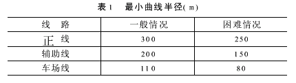 3.2 选择新型转向机构 在小半径曲线上,轮沿与钢轨轨头角部接触,这不仅会造成轮轨磨损,也会产生很大的振动和刺耳的噪声。如果轴间容许有一定的自由度,将使噪声减小。 直线电机平面转弯半径小,有利于线路平面选线,可避开已建或规划待建的建筑,以及建筑基础、地下管线和其它地下建筑物,降低工程造价。直线电机采用径向转向架通过曲线地段如图1所示。采用径向转向架带来如下优点: (1)平面转弯半径小,与传统的粘着驱动式系统(转向架轴距、定距相同)相比,最小水平转弯半径由一般轮轨系统的200m可减至80m; (2)有利于线路平面选线,可避开已建或规划待建的建筑,以及建筑基础、地下管线和其它地下构筑物,降低工程造价; (3)通过关键技术部位特殊装置的动作,使车轴产生一定的转角,使其随着弯道的曲线改变轴距,有效地减少了机车车轮与钢轨间的摩擦,大大降低了轮缘的磨耗; (4)噪声低。没有旋转与传动系统,使轮轨磨耗降低,噪音比传统车辆减小10B(A)左右; (5)体积小,重量轻。缩小隧道端面和高架结构,大幅度降低工程造价; (6)通过小半径曲线能力提高,提高运行速度,适应城市街区,减少工程拆迁,加减速度大,爬坡能力强,不受气候影响; (7)自重小,没有牵引传动和粘着损失,自动化程度高,耗电省。 目前广州地铁四号线已采用直线电机车辆,降低了广州后续轨道交通线建设的工程投资和运营费用,保持了轨道交通系统的发展潜力,同时有利于城市土地和地下空间的合理开发和利用,填补了国内轨道交通技术上的空白。3.3 养护维修 通过养护维修措施可以克服小半径曲线带来的不良影响。如剥离掉块、波浪磨耗等。3.3 1 钢轨涂油 小半径曲线段可通过涂油来大大减缓磨耗。新钢轨由于没有受到列车车轮的碾压,其表面硬度很低,经过一定时间的碾压后,其表面形成一个超过原来硬度约1 5~1 8倍的保护层,可大大提高钢轨表面的耐磨性能。通过涂油可使保护层顺利形成,降低钢轨的磨耗速度。3.3 2 钢轨打磨 钢轨打磨是目前最有效的消除波磨的措施,已发展成为一种多功能的现代化养路技术。打磨的重点已从钢轨修理转向钢轨保养。钢轨的定期打磨,可以消除和延缓波磨、消除钢轨表面的接触疲劳层防止剥离掉块、对断面打磨还可以改善轮轨接触条件,降低接触应力。目前广州地铁正用美国HTT公司购买的RGH10SERIESC1-32磨轨车对小半径曲线进行打磨,效果良好。 另外,通过优化轨道结构部件(如垫板、橡胶垫等)的刚度匹配,设置合理的轨底坡也可以减少小半径曲线处的磨耗程度。4结束语 在进行轨道交通线路方案设计时,应尽可能使用较大的曲线半径,以避免或减少在运营过程中出现的这些不良问题,300m以下的曲线半径轮轨磨耗大,噪音大,应尽量少用,尤其位于两站中间更应少用。随着我国材料科学及车辆工业技术不断进步,钢轨的耐磨性继续提高,轮轨之间的匹配关系还可以改善,将来小半径曲线处的钢轨更换周期可以延长。能适应小半径曲线的车型也越来越丰富,其不良影响也可以很大范围内的降低。参考文献[1] GB50157-2003,地铁设计规范[S].北京:中国计划出版社,2003.[2] 郝瀛.铁道工程[M].北京:中国铁道出版社,2000.[3] [日]佐藤吉彦等.新轨道力学[M].北京:中国铁道出版社,2001.[4] 顾保南等.论城市轨道交通最小曲线半径标准的选择[J].同济大学学报.[5] 张庆贺等.地铁与轻轨[M].人民交通出版社,2002.