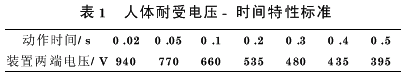 3OVPD与框架保护动作时间配合及存在问题分析3.1动作时间的配合 OVPD主要用于保护人身安全,其动作特性应能满足EN50122-1(ProtectiveProvisionsRelat ingtoElectricalSafetyandEarthing)标准中规定的的人体耐受电压-时间特性曲线的要求。如表1所示。