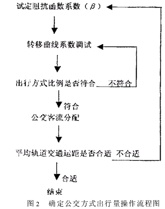 将该表反映到转移曲线上去,以便与方式分布函数结合从而确定各个交通小区的公交方式出行量。采用的具体操作流程如图2。