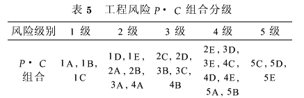 根据表4,对工程风险事件的P·C组合进行分级,从表5中可以看出,每一级风险水平都有多个P和C的组合情况.