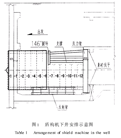软土地层SMW工法盾构出洞施工技术摘 要:本文利用了SMW工法中水泥土搅拌桩的止水功能与H型钢的抗变形能力,在施工场地比较狭小和地下管线复杂的情况下,将其应用于加固某盾构隧道出洞时的周围软土地层,取得了良好的效果和经济效益,对类似工程有一定的指导意义。关键词:SMW工法;盾构出洞;软土地层;技术措施1概述 软土地层盾构进出洞加固通常采用深层搅拌桩,并在搅拌桩与连续墙之间进行旋喷或注浆,但是在施工场地窄小或地下有建筑管线时,这种方法有时将变得无法进行。本文以上海地铁M8线VB标区间隧道为例,介绍软土地层中采取SMW工法出洞施工技术。 盾构出洞是指盾构机安装调试完成后,对准设计中心点、按照中心线路,自始发井出发,穿过井壁,推过整个加固区的施工过程。它涉及到盾构机的安装、布置、调试及其所需的配套设施的准备、井壁混凝土的处理、井外地基处理、洞门防流水涌砂处理、盾构机推进控制、管片拼装和环境保护等工作。2出洞地面准备2.1盾构机的进场 由于盾构机自身的体积和重量比较大,在城市繁忙的交通条件下,尽量选择夜深、人少、车少的时间进场,进场前拟定合理的行驶路线,征得交警部门的同意,并邀请交警协助运送。2.2临时设施 在盾构推进施工前,接常规进行施工用电、用水、通风、排水、照明等设施的安装工作;施工必需材料、设备、机具备齐,管片、连接件的储量需满足三天推进用量;井上、井下建立测量控制网并经复核、认可;车架安置到位,电缆、管路等接至井下;对隧道沿线的建筑物以及盾构将要穿越的需要保护的管线布置沉降监测点。沿线盾构障碍物在盾构推进前开始拔除。 吊运盾构机的大型吊车到位,主吊车采用200t,辅助吊车选择100t,完成盾构机的吊运。3井下准备3.1盾构承台设备(亦称发射架) 作为盾构机在井内的支承台座,在焊接制作时,主要考虑其能够充分承受盾构机自重,可以进行安全的移动操作,并用钢轨、工字钢或其它材料设置一条可靠的盾构推进轨道,保证起步工作准确进行。3.2盾构机下井安装 由于盾构机进场和吊运时被分为几个部分,并在下井时焊接安装了吊钩等连接件。盾构机井下组装时,要将这些连接件割除,并将各组件焊接组装。其安装位置以设计上的中心位置和高度为基础确定。3.3 反力支撑设备(后盾反力系统)3.3.1后盾反力装置及发射架安装 后盾反力装置由钢反力架、146°钢弧形环、钢支撑、钢门及临时衬砌组成。后盾临时衬砌由宽度为1m的管片组成,采用通缝连接。3.3.2反力架安装 根据首环管片的里程,决定反力架的平面位置。反力架安装时,用经纬仪双向校正两根立柱的垂直度,使其形成的平面与推进轴线垂直。在反力架固定牢靠后,用素砼找平其与车站结构间的空隙。3.3.3负环安装 负环管片安装前,先在反力架上测出最后一环后盾管片的投影位置和纵向螺栓位置,弹好控制线,并预先把纵向螺栓焊接在反力架上,以便于今后施工。 最后三环(即-12、-11、-10环)管片需待盾构机下井后,用吊车吊至井下安装。由于-9环管片已伸入盾构机中,因此,从-9环开始,所有负环都在盾构机中安装。 在安装-10环管片之前,必须先涂好盾尾油脂。同时,控制好-11环管片的法面,必要时需粘贴纠偏材料。 当-9环管片安装完毕后,盾构机准备前进,同时,开始打开洞门。此时橡胶帘布板已安装完毕,起重工应在洞门完全打开以前把-8环管片全部准备到位。洞门打开,迅速清理洞门垃圾,盾构机向前推进约30cm,拼装-8环管片。盾构机继续推进,管片紧随拼装。 -6环拼装结束后,盾构机头部进入橡胶帘布板,开始前仓回土,再推进100cm后拼装-5环管片。-5环管片拼装结束后,再推进约30cm,安装146°钢弧形环及钢支撑。钢弧形环及钢支撑安装完毕,再推进约15cm,盾构机应已开始出土,大刀盘突尖已出洞,推进时应控制前仓压力及盾构千斤顶油泵压力,防止因切削速度过快,引起塌方。