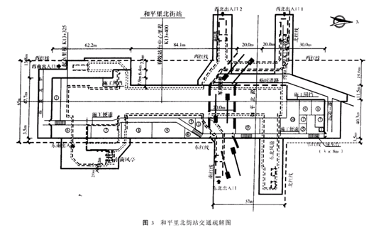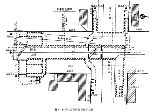 北京地铁五号线和平里北街站结构设计的几个问题【摘 要】 从北京地铁五号线和平里北街站结构设计中既有管线道路的改移、交通疏解、危房保护的等方面,阐述了结构设计过程中几个问题的处理方法。 【关键词】 管线道路改移; 交通疏解; 危房保护1工程概况1 .1 地理位置 北京地铁五号线和平里北街站位于和平里西街与和平里北街的交叉路口,沿和平里西街规划道路中心线呈南北纵向布置,车站主体北端跨交叉路口,东北风道临近且平行于和平里北街道路及民族楼6号楼(见图1)。
