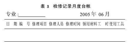 2.2积累定额管理资料2.2.1做好原始记录 随着地铁信息化的全面推进,物资管理系统、检修系统等的建立和完善,依据统计报表软件系统做好列车及设备维护检修的原始记录工作、健全各类统计台帐,全面、细致地记录各类故障发生的原因及处理办法,对每一笔检修项目、操作工时及返修情况作详细记录,定期进行对比分析,这是核定物料消耗定额、工时定额的基础,如表3所示。