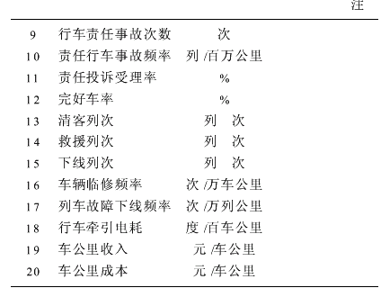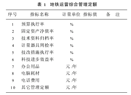 对于生产一线制定定额指标主要是在合理控制成本的同时,为乘客提供安全、准点、快捷、舒适服务的相关定额指标,如表2所示。