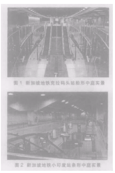 浅析轨道交通地下站的中庭建筑设计摘要:介绍了新加坡轨道交通中庭式地下车站的工程实例;叙述了轨道交通地下车站的构成因素。通过上海两个中庭式地下车站设计实例,浅析其设计的特点,相关因素对中庭车站的影响等。关键词:轨道交通地下站中庭设计 对于层数少、空间构成较为单一的地下车站,由于光线差、方向感差、通风不良、内部空间局促,中庭空间可以作为一个中心开放的“核心”来改善空间的性质,使建筑空间具有流动性。在中庭上方设自然采光更能提供地下空间与自然环境沟通的条件。中庭空间在民用建筑中广泛应用,地下中庭车站在国外已大量推行,而我国轨道交通地下车站应用实例尚少。本文结合上海市轨道交通7号线龙阳路站、11号线隆德路车站的工程实例,浅析中庭地下车站的构成因素、受控因素、设置条件等。1轨道交通地下站中庭的构成因素中庭式地下车站的主要构成因素: 1)具有贯通站台、站厅的共享空间。 2)站厅公共厅要有适当的集散场所。 3)通常屏蔽门立柱与车站立柱相结合。 4)辅以必要的环境设计、引入自然光线(或模拟自然光线)。2国内外中庭式地下车站工程实例 将地铁中庭车站和自然采光结合的设计理念已在世界很多大城市轨道交通建筑中大量体现。有的工程在人流所经之处不仅设置动态水流,环绕植物,而且顶部开设采光棚,将自然光引入地下,使人在地下能与自然亲密接触,成为建筑空间设计的核心。 新加坡东北线地铁所有车站均采用中庭建筑形式,创造良好的地下空间感和通视效果,如克拉码头站船形中庭(见图1),小印度站的条形中庭(见图2),乘客在进站后即可直视站台列车及候车情况。