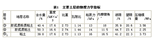 由表1和工程地质资料可知:联络通道所处的④淤泥质粘土层和⑤1粘土层,基本上均属微透水性、抗剪强度较高的土层,其自立性较好。