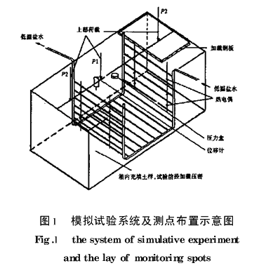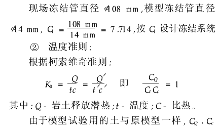上海软土冻结加固冻胀防治技术的模拟试验研究摘 要:结合上海地铁建设工程实际,采用模拟试验的方法,分别对预留管拔除法和热盐水循环法抑制冻胀的机理、防治冻胀的效果以及影响冻胀的相关因素进行综合分析和试验研究,从而为上海软土冻结加固冻胀的防治提供了理论依据和有关的参考数据。关键词:冻胀;防治技术;模拟试验 众所周知,土层的人工冻结过程,伴有明显的冻胀现象。对于煤矿井筒或其它一些野外冻结工程,冻结对周围土体的影响不甚重要。但在城市中施工则不同,地铁车站、隧道等一般都位于繁华地段。由于冻胀作用,势必对周围土体在一定范围内产生影响,危及建筑物和管线的安全。 目前,国内许多学者对冻结过程中冻胀的产生机理做了许多研究[1],但对城市软土冻结工程冻胀防治技术的研究却少见。为了填补这一空白,本文结合上海地铁建设工程实际,采用模拟试验的方法,分别对预留管拔除法和热盐水循环法抑制冻胀的机理、防治效果及其影响因素进行综合分析研究,为软土冻结加固冻胀的防治提供了理论依据和有关的参考数据。1原型工程简介 原型工程为上海市地铁一号线上体馆车站与明珠线二期上体场车站的换乘站“U_U”型水平冻结施工。该换乘站结构由并列的上行线隧道、换乘通道和下行线隧道三部分组成,横截面尺寸高约5.8m,宽21.45m。换乘长度21.7m。换乘顶板标高-10.08m,底板底标高为-15.82m。换乘段之顶板即是一号线上体馆站的底板,其上方地面为立交桥。该区的地质状况大致为:换乘段开挖的土层为④2层砂质粘土夹粉质砂土,含水量32.2%,渗透系数大,属于强冻胀土层,层厚约4.82m。该土层的上方为厚约9.37m的④1的灰色淤泥质粘土,下方为⑤1-1粘土厚约4.32m,均属于强冻胀土层,其冻结过程中将伴随有较大的冻胀力和冻胀变形。为了防止冻胀使一号线地铁车站底板产生较大的变形,必须严格做好冻胀的防治工作。为此,对冻胀防治技术的模拟试验研究就显得尤为必要。2 冻胀防治技术的模拟试验2.1模化设计 以温度场相似为基础的冻结模拟试验诸多影响因素中,长度、时间、温度、热量和质量等为基本物理量,其它为导出量。根据函数式和π项式,可得到几个主要相似准则[2]:①几何缩比: