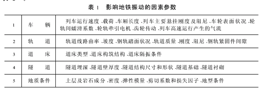 文献[4]认为,严格意义上,上述各参量的关系为函数关系,但目前尚无成熟的精确表达式。上述主要参数中以列车速度、车辆重量、轮轨条件、隧道基础、结构类型及是否使用隔振措施等因素对地铁振动源特性影响较大,其主要表现为[3,4,5]: