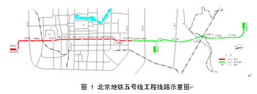在地铁五号线工程地下线路段,部分线路在现状宽阔的道路下方通过,地面限制条件少,采用技术较为成熟的矿山法施工;而部分线路受环境条件限制,隧道基本在现状低矮破旧的建筑物下通过,对地面沉降的要求较高,加上工程地质和水文地质条件复杂,地面无条件降水,推荐采用盾构法施工。采用盾构法施工的区段为宋家庄~刘家窑地段、东单~和平里北街地段。2、盾构试验段概况 由于北京以往没有采用盾构法施工地铁隧道的工程经验,且本地区的地质条件与国内其他采用过盾构法施工的城市有比较大的区别,为了确保地铁五号线正式施工能够顺利进行,首先选择正线典型的地段开展试验段施工,以摸索和掌握北京地区特有条件下的盾构隧道设计、施工技术。 盾构试验段选在北新桥站~雍和宫站区间线路的左线(西侧),试验段隧道长度约688m。试验段线路平面见图2,由图上可以看出,试验段隧道基本在现状建筑物下方穿过。