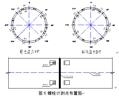 二、盾构试验段工程的主要研究内容 盾构隧道的设计与施工在很大程度上依赖于地质条件,我国的上海和广州已经采用盾构法成功实施了不少工程,也作过不少研究,但这两地区的地质条件与北京差异较大。上海地区的地层为淤泥质地层,非常松软,自稳能力差,侧压力比较大且分布均匀;广州地区的地层除在浅表有一层比较薄的土层外,基本为强风化~中风化~微风化岩层,围岩的强度模量高,自稳能力好;而北京地区表层从0~80m范围基本为第四纪冲洪积地层,既有表层的松散回填土层,又有从粘土~粉土~各种粒径的砂层~砾石层~卵石层等各层交替组合形成的地层,从性质上与上海地区截然不同,而与广州地区的地层也有较大的区别。试验段工程从设计、管片生产和施工等方面进行了系统的研究,主要开展的研究项目有:1.盾构隧道管片地层的相互作用和管片接头刚度研究 通过室内模型试验、管片接头试验、管片抗弯试验和现场大量的实验测试,并结合理论分析,探索北京特有地层条件下的盾构隧道管片与地层的相互作用形式及规律。提出北京特有地层条件下,盾构隧道周围地层荷载的分布、变化规律和取值方法。基于研究成果提出的土压分布规律,对管片设计进行优化;2.管片生产技术的研究 为确保混凝土管片的质量,对高性能混凝土配合比、混凝土构件自动蒸养系统、盾构管片生产工艺及试验设施、施工机具等进行研究,并编制了管片生产企业标准和预制混凝土盾构管片操作质量标准。3.盾构施工技术的研究 在试验段施工过程中,对盾构始发技术、开挖面稳定措施、管片拼装技术、地表沉降控制技术、壁后注浆技术、盾构施工监测技术和盾构施工测量技术等进行研究。三、北京特有地层条件下盾构隧道设计与施工 通过开展上述各项研究,初步掌握了北京特有地层条件下盾构隧道设计和施工技术。1、管片接头研究 管片接头作用的大小,将直接影响到整环隧道的受力,一般情况下螺栓的作用越强,隧道的内力就越大,另外,螺栓对隧道的变形有一定的限制作用。对北京地层条件作用下螺栓的作用,目前还没有见到文献报道,需要研究确定。 我们从两个方面研究了采用弯螺栓连接的管片接头。(1)现场测试研究 我们在试验段隧道埋设了螺栓应力计,以测试管片拼装后到推出盾尾一段时间螺栓的受力行为和螺栓应力值,每组测试断面由两环管片组成,相互验证。螺栓应力计测点布置方式见图5。