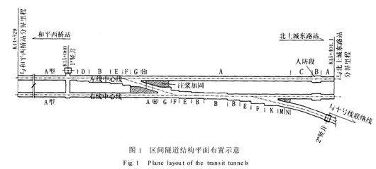 北京地铁和平西桥站—北土城东路站区间渡线区隧道暗挖施工技术摘 要 文章主要介绍了北京地铁五号线和-北区间渡线区暗挖隧道断面转换施工技术,其经验可为今后类似城市地铁工程施工提供借鉴。关键词 区间渡线 暗挖隧道 断面转换 施工技术1工程概况 北京地铁五号线和平西桥站—北土城东路站区间位于朝阳区樱花园西街下方,起讫里程:K14+529.0~K15+401.1,全长2×872.1m,线间距14.8m~18.8m,洞顶埋深10.5m。洞身穿越粉土层、粉细砂层,地下水丰富。区间在ZK15+084~ZK15+149、YK15+159~YK15+241段为渡线区大断面隧道;在YK15+241~YK15+303段为与十号线联络线接口段大断面隧道,有单洞单线、单洞双线、单洞大跨及双连拱隧道等几种型式。隧道采用浅埋暗挖法施工,地表设大口井降水,单洞最大开挖尺寸(宽×高):14m×9.4m,复合式衬砌结构,初期支护与二次衬砌间设全包防水层。区间隧道结构平面布置见图1。
