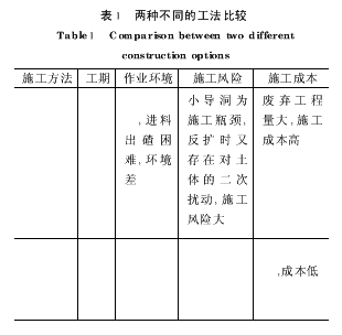 3 结论与思考 (1) 区间右线渡线区及与十号线联络线接口段大断面隧道采用增加横洞、创造由大往小的施工条件,与设计小导洞爬坡法施工相比较具有更大的优越性(表1)。