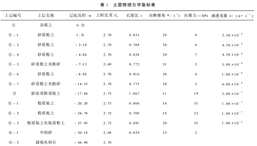 杭州地铁秋涛路站基坑施工管涌分析处理摘 要 以杭州地铁秋涛路站东区基坑施工两次管涌为例,分析发生管涌的原因、处理措施,并介绍深基坑降水的重要性、围护结构渗漏的检验和加固以及安全性验算方法等。关键词 基坑施工 涌水涌砂 分析处理1 工程概况 杭州地铁一号线试验段秋涛路站,位于杭州市秋涛路与婺江路交叉路口,沿婺江路地下布置,穿过秋涛路和新开河。该站为地下双层岛式车站,车站总长259.6m,车站宽度18.9m,采用双层双跨箱形框架结构,顶板覆土埋深约5.0m,底板埋深约18.0m,车站围护结构采用φ1000@750钻孔咬合灌注桩,插入比约为1∶0.8。2工程地质和水文地质 根据工程详细勘察报告,基坑开挖影响范围内各土层的岩土物理力学指标如表1所示。