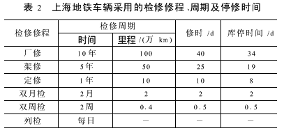 香港地铁检修模式在北京地铁4号线车辆基地设计中应用的可行性研究摘 要:从地铁车辆检修修程、周期及停修时间,配属车辆及车辆段规模的影响,检修修程内容等方面,对北京地铁4号线车辆检修基地采用的香港地铁检修模式与目前内地通常采用的检修模式设计进行对比分析,提出北京地铁4号线车辆基地设计采用香港地铁检修模式的可行性。关键词:地铁车辆;检修模式;检修修程;车辆基地 近年我国各城市的轨道交通建设从单纯引进车辆等设备技术,逐步过渡到学习国外及我国香港地区运营管理经验,进而到目前引入香港地铁参与内地城市轨道交通的建设及运营。诸如上海地铁在9号线建设中,引入港铁作为业主代表的建设公司;深圳地铁在4号线建设中,以BBT模式引入港铁作为业主及运营单位;而在北京地铁4号线建设中,港铁则作为部分投资方和运营单位被引入。因此,随着港铁的介入,其区别于内地的运营管理模式引发诸多在规划、设计、建设、运营等方面的问题。如何适应港铁的要求并结合内地实际情况解决此类问题,也凸现出其重要性。本文从设计方面,就北京地铁4号线车辆检修基地采用港铁车辆检修模式与目前内地通常采用的检修模式设计进行对比分析,提出可行性。1车辆检修修程、周期及停修时间对比分析 我国目前通常采用的检修修程、周期及停修时间是基于日常维修和定期检修相结合的检修制度即预防性计划修制度而确定的,表1、表2分别是北京市及上海市采用的检修修程、周期及停修时间。