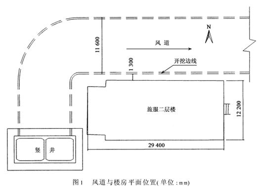 浅埋暗挖法施工大跨度风道通过楼房的沉降控制技术摘要:文章旨在介绍软土地层浅埋暗挖大断面地铁车站风道,顺利通过地面楼房建筑区,保证楼房不发生开裂的开挖沉降控制技术。通过地表树根桩加固技术的应用,有效地控制了地表沉降,保证了楼房的安全,为风道开挖的顺利进行创造了条件。关键词:浅埋暗挖法 风道 沉降 树根桩1 工程概况 某城市地铁车站风道埋深7.5m,长为82m,风道高度13m,开挖宽度11.6m,穿越粘土层、粉质粘土、粉细砂层、中粗砂层、卵石圆砾层、粘土层。风道竖井位于某公园建筑区内,风道破马头门进洞后经90°转弯向东继续开挖,从公园旅游服务部二层楼的北侧穿过,风道开挖边线距公园旅游服务部二层办公楼基础边仅有1.3m。二层楼为20世纪80年代修建,楼房长29.4m,宽12.2m,砖砌条形基础,埋深3m,楼房主体为砖混结构,位置关系见图1。