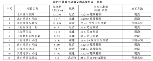 城市轨道交通高架桥的选型摘 要:根据广州地铁四号线、五号线、六号线的设计及国内轨道交通高架桥设计的工程现状,探讨了城市轨道交通高架桥在选型上应考虑的因素、发展方向,给出了广州地铁六号线东延段投标桥梁选型的参考性方案。关键词:轨道交通;高架桥;桥梁选型 高架桥作为地铁的一种线路敷设方式,由于工程造价较低、施工速度快、适应线路线型的能力强,因此在国内外的地铁建设中发展很快。在国外,如新加坡、荷兰、法国等地的地铁中都存在高架区段,国内北京、上海、天津、南京等城市也采用了部分高架线路。广州市正在实施的地铁二八号线、三号线、四号线、五号线、六号线也都有部分区段采用了高架桥。这充分说明了只要条件许可,设计处理得当,地铁高架桥也会象城市立交桥一样被人们所接受,认可。1 轨道交通高架桥的特点 (1)长且平:短着几百米,长着二三十公里;处于城市之中,除与地下的交接的过渡段起伏较大外,其它区段相对比较平顺。 (2)窄:不象市政城市桥梁,动辄十几米二十几米宽,轨道交通高架桥单线桥5米左右宽,双线也不过9.5米宽。 (3)要求高:为了满足乘客舒适性的要求,大多都设计为无缝线路,桥墩要求的线刚度较大,使得桥墩体量上要比一般市政桥梁大。同时对基础的沉降要求较高。 基于以上轨道交通高架桥的特点,能否把桥设计的简洁、明快、实用、大方、与周边和谐则成为轨道交通高架桥设计的难点。2国内城市轨道高架桥的现状 就标准段高架桥来说,根据国内北京、上海、南京、广州几座城市已建成和正在建设的轨道交通高架桥来看,跨度上从25米、30米、35米都有,以30米为多,体系上简支梁、连续梁、连续刚构,以简支梁居多,截面型式有整体箱梁、小箱梁、T梁、槽形梁、鱼腹梁、蝙蝠梁、脊梁等,以整体箱梁居多,施工方法上来说,有支架现浇、整孔吊装、节段拼装等。
