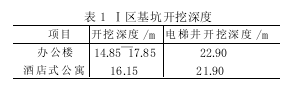 Ⅰ区围护结构采用地下连续墙形式,地下连续墙深约30 m,宽度为 800 mm (局部 1000 mm)。北侧与Ⅱ区结合部采用钻孔灌注桩和三头搅拌桩形式作为临时隔断。 本工程采用“两墙合一”形式,即地下连续墙将同时作为结构地下室外墙。 基坑支撑体系采用 3 道钢筋混凝土支撑和围檩。 为了加强支撑间的整体作用,在支撑间设置联系杆。第一道支撑中心标高 -2.10 m,截面为 1 000 mm×800 mm,局部结合栈桥处为 1 000 mm ×1 000 mm,围檩截面为1 200 mm×800 mm;第二道支撑中心标高 -7.9 m,截面为1 200 mm×800 mm,围檩截面为 1 300 mm×800 mm;第三道支撑中心标高 -12.95 m,截面为 1 300 mm×800 mm;围檩截面为 1 400 mm×800 mm。 办公楼电梯井挖深部位设置一道钢支撑,即,中心标高-19.65 m 处设置第四道钢支撑 (H700 mm ×300 mm ×13 mm×24 mm)。 由于基坑周边没有施工道路,因此沿基坑中间部位及大门附近支撑上设置混凝土栈桥,以利土方施工顺利进行。2 水文地质条件 本工程地层以淤泥质粘土和粉质粘土为主,按其水文地质特性,场地开挖范围内的地下水类为潜水。 潜水含水层:场地潜水主要在②、③及④层土中,其补给来源主要为大气降水,排泄方式主要为蒸发,潜水与地表水体也有较强的水力联系。勘探期间实测场地浅部地下水位埋深为 0.90~1.50 m(上海市年平均地下水位离地表面约 0.50 m~0.70 m)。3 降水施工工艺 由于基坑围护采用明挖法,施工时需及时疏干开挖范围内土层的地下水,为保证基坑的干开挖施工的顺利进行,共布置了 47 口疏干井(按每 240 m2 布一口井)。3.1 井孔施工 (1) 测放井位:根据井位平面布置图测放井位,当布设的井点受地面障碍物或施工条件的影响时,现场可作适当调整。 (2) 安装钻机:机台应安装稳固水平,大钩对准孔中心,大钩、转盘与孔的中心三点成一线。 (3) 钻进成孔:疏干井的开孔孔径为 φ500 mm,均一径到底。钻进开孔时应吊紧大钩钢丝绳,轻压慢转,以保证开孔钻进的垂直度,回转钻成孔施工采用孔内自然造浆,钻进过程中泥浆密度控制在 1.10~1.15,当提升钻具或停工时,孔内必须压满泥浆,以防止孔壁坍塌。 (4) 清孔换浆:钻孔钻进至设计标高后,在提钻前将钻杆提至离孔底 0.50 m,进行冲孔清除孔内杂物,同时将孔内的泥浆密度逐步调至 1.10,至孔底沉淤小于 30 cm、返出的泥浆内不含泥块为止。 (5) 下井管:下管前必须测量孔深,孔深符合设计要求后,开始下井管。井管焊接要牢固、垂直,下到设计深度后,井口固定居中。 (6) 填砾料 (中粗砂):填砾料前在井管内下入钻杆至离孔底 0.30~0.50 m 处,井管上口应加闷头密封后,从钻杆内泵送泥浆进行边冲孔边逐步调浆,使孔内的泥浆从滤水管内向外由井管与孔壁的环状间隙内返浆,使孔内的泥浆密度逐步调到 1.05,然后开小泵量按要求填入砾料,并随填随测填砾料的高度,直至砾料下入预定位置为止。 (7) 填粘性土:在围填粘性土时,应将块状的粘性土碾碎(粒径≤3 cm) 后填入,下入速度不宜太快。 (8) 井口封闭:为防止泥浆及地表污水从管外流入井内,在地表以下回填 2.00 m 厚粘性土以止水,或采用水泥浆封孔。 (9) 洗井:在提出钻杆前利用井管内的钻杆接上高压泵,先进行孔内换浆,将孔内泥浆换成清水,同时置换出井管底沉淤,直到水清不含砂为止。 (10) 安泵试抽:成井施工结束后,在疏干井内及时下入潜水泵与接真空管、排设排水管道、地面真空泵安装、铺设电缆等,电缆与管道系统在设置时应注意避免在抽水过程中被挖土机、吊车等碾压、碰撞损坏。抽水与排水系统安装完毕,即可开始试抽水。先采用真空泵与潜水泵交替抽水,真空抽水时管路系统内的真空度不宜小于0.06 MPa,以确保真空抽水的效果。 (11) 排水: 洗井及降水运行时,用管道将水排至场地四周的明渠内,通过排水渠将水排入场外市政管道中。3.2 疏干井降水运行 (1) 在疏干井的成井施工阶段应边施工边抽水,即完成一口投入降水运行一口,力争在基坑开挖前及时降低围护结构内基坑中的地下水位,做到能及时降至每一层开挖面以下 0.5 m~1.0 m。 (2) 坑内疏干井抽水时,潜水泵的抽水间隔时间由短至长,每次抽水井内水抽干后,应立即停泵,对于出水量较大的井,每天开泵的抽水的次数相应要增多。 (3) 工地现场要备足潜水泵,数量要多于井数的 1~2台。使用的潜水泵要做好日常保养工作,发现坏泵应立即修复或及时更换。 (4) 降水运行期间,现场实行 24 h 值班制,值班人员应认真做好各项记录,做到准确齐全。 (5) 降水运行阶段应保证电源供给,如遇电网停电,有关单位须提前两个小时通知降水施工人员,以便及时采取措施,保证降水效果。4 挖土与支撑施工4.1 第一皮土方开挖和支撑 ( 栈桥) 施工 公寓楼和塔楼部位占地面积各 5 150 m2 和 5 660 m2,此处先挖深 1.80 m~ 1.00 m (天窗区域),土方量约为 7482 m2。施工利用三台 EX-200 挖土机,由南向北进行表层土开挖。 第一道支撑施工时,按要求凿除地下连续墙上部分混凝土,要求凿至围檩底面以上 5~10 cm。剥出地下连续墙主筋,清除开凿面松动的混凝土碎块和残浆。 混凝土浇捣采用 C30 混凝土 (除四周围檩均采用C30S6)。 按照设计图纸放出支撑、围檩垫层灰线 (每侧垫层边比支撑边宽 250 mm),并复核钢构柱位置,根据钢构柱实际位置在征得设计同意后调整支撑轴线位置,但注意与钢结构柱位置不能相碰。 支撑底部浇筑 200 mm 厚 C20 混凝土垫层,上铺油毡隔离层代底模。 侧模采用九夹