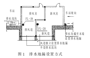 浅谈地铁车站的排水系统设计摘 要: 简要介绍地铁车站的排水种类和方式, 重点探讨排水地漏的布置, 以及地铁车站废水泵站和污水泵站的设计及控制方式等问题, 供设计人员参考。关键词: 排水地漏; 污水泵站; 废水泵站1 前言 近年随着城市化进程的加快, 城市人口急剧增多, 国内各大城市的地面交通均面临着巨大的压力,城市轨道交通成为一种有效疏导地面人流和缓解交通堵塞的重要手段, 目前已在国内多个城市中建成并投入运营, 且大多以地下铁道为主。 地铁车站的排水设计是车站给排水及防灾设计的主要内容之一, 及时排放车站内部的积水, 对车辆的正常运行及各类电器设备的保护有着重要意义。地铁车站排水系统采用分流制, 主要由废水系统、污水系统和雨水系统组成, 其中废水系统包括车站冲洗水、消防废水和结构渗漏水等; 污水主要为卫生间生活污水; 雨水主要来自敞开式的出入口和风亭等。2 地铁车站废水系统设计 车站内废水收集和排放流程如下: 各类废水→排水地漏→轨道排水明沟→主废水泵站→压力检查井→市政污水系统。2.1 各类废水量设计计算标准 车站冲洗水排水量为 4L m/2次, 计算面积为站厅站台层公共区域, 一日一次, 每次按 1h 计算; 结构渗漏水通常设计标准为 1Lm/2日, 计算面积为车站内表面积; 消防废水按一次消防水量 100%计算。2.2 排水地漏的布置 车站各类废水均由设在站台层、站厅层和有用水点的房间内的地漏收集, 通过排水立管排放至轨道两侧的排水明沟内。站厅层排水地漏设在车站主体内侧排水浅沟内, 相互间隔约 40m, 此外车站出入口进站处应设置截水沟和排水地漏; 环控机房、保洁间、污水泵房、废水泵房、茶水间等有给水点的房间也应设置地漏。站台层地漏主要排放公共区冲洗废水, 与站台边缘相距 2.5m 以上。对于各类风道进入车站主体处的地漏设置,《地铁设计规范》中并无明确规定, 笔者认为要避免不同类型风道因排水浅沟连通而造成的相互干扰, 每个风道入口处均应设置排水地漏, 不同风道不能共用排水地漏, 如图 1 所示。
