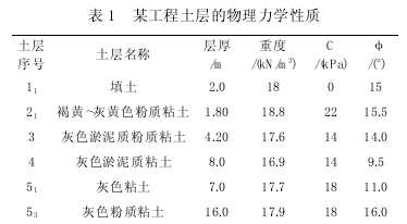 某基坑开挖对邻近轨道附加变形的影响[摘 要] 通过对基坑开挖引起的变形分析的实例介绍,阐述了基础支护开挖弹塑性有限计算方法及原理,得出了计算模型及计算结果。[关键词] 基坑开挖;有限元;附加变形1 概 况 上海市西藏南路 1200 弄,场地北临丽园路,南临徽宁路,东临西藏南路。场地内拟建的 1、2 号楼为地上 27 层,拟建的商业会所为地上两层,同时拟建的还有一个下沉式广场。上述建筑物的基坑开挖深度分别为 6.45 m、4.95 m及 3.5 m。场地东侧西藏南路下有轨道交通 M8 线区间隧道穿过,商业会所基坑邻近隧道,区间隧道边距围护体边约 11.5 m。1.1 基坑概况 场地标高:工程±0.00 相当于挖+4.30,自然地面相对标高为- 0.90。 基坑开挖深度:根据上海众谊建筑设计有限公司所提供的设计资料,本工程地铁侧基坑开挖深度为 4.95 m。 基坑 支 护 类 型 : 基 坑 地 铁 侧 挡 土 采 用Ф700@1000 钻孔灌注桩,桩底埋深 13 m。灌注桩外围采用 4 排 Ф700 双轴搅拌桩作为止水帷幕,桩底埋深 13 m:地铁侧设一道斜抛钢撑,撑于中部先行开挖形成的底板上。基坑地铁侧设置双轴搅拌桩墩式加固。1.2 邻近轨道交通设施概况 场地东侧西藏南路下有轨道交通 M8 线区间隧道穿过,商业会所基坑邻近隧道,区间隧道边距围护体边约 11.5 m。隧道顶埋深约 10 m(隧道中心埋深约 13 m)。基坑开挖大体量的卸载,将会对地铁区间 @道产生一定的附加变形影响,因此,需对基坑卸载的附加变形影响进行预估分析。2 地质条件 本工程土层的物理力学性质如表 1 所示。
