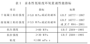 整个隧道堵漏修复过程中, 注浆压力千万不能过大, 以免造成管片本体产生新的裂缝, 破坏管片强度。亲水性低粘度环氧浆液因牵涉到材料的强度问题, 选用时应慎重。我国即将出台环氧浆液的行业标准, 这为广大工程技术人员选用此材料提供了依据。本工程所列出的环氧浆液性能指标要求就是在将要出台的环氧浆液行业标准讨论稿的基础上, 结合本工程实际工况提出的(见表 1 所示)。3.3 管片碎裂修补措施 在衬砌接缝和管片裂缝堵漏处理无渗漏的基础上, 进行管片碎裂修补。 1)对于管片表面缺损、松动、起壳部分, 应首先凿除松动、起壳混凝土, 将基面清洗干净。 2)在基面上涂布界面处理剂, 采用快速修补砂浆修补管片。根据工程的实际情况, 此类砂浆应具备两项必需的指标, 即在短时间内就能达到较高的强度、砂浆达到的最终强度应与混凝土管片的强度相差无几(见表 2 所示)。