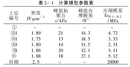 根据该地区的勘查资料,每层材料参数依据对其组分按厚度进行加权平均的处理方法而获得.模型材料的物理力学参数见表2-1.