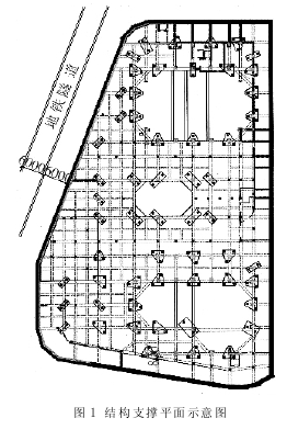 5 基坑降水 本工程基坑降水采用真空深井降水。由于本工程场地土砂层深厚, 含水率高, 土的渗透系数大, 所以降水条件优越,但是降水效果的好坏将直接影响到土方开挖的顺利进行, 以至直接影响到基坑安全。也就是说, 成功地进行基坑降水, 能大大改善砂性土的物理力学性能, 使之有利于挖土施工; 反之则对挖土施工带来极大的困难, 甚至还会引发流砂、管涌等现象, 危及基坑安全。6 土方开挖 土方开挖是逆作法施工的又一技术难点。由于逆作法土方开挖采用暗挖法施工, 所以挖土净空高度、立柱布置等因素对土方顺利开挖起到很大的影响; 深基坑土方开挖对围护结构及环境影响理论的研究和实践, 特别是“时空效应”理论的建立, 为深基坑土方开挖施工提供了概念性设计。 本工程土方开挖总体上依据地下结构施工的顺序及设计工况要求, 分三层开挖施工。在每层挖土作业中, 遵循“盆式”开挖的概念, 进行分区、分段开挖, 即首先保留基坑四周一定宽度的土坡以增强围护结构的被动土压力, 对基坑中央先行开挖至设计标高; 然后再分段开挖基坑四周的留置土坡, 减少围护结构( 地下连续墙) 无支撑下的暴露时间。混凝土垫层随挖随浇, 并尽可能地形成对通, 减少坑底土的暴露时间, 防止土体回弹。 第三层挖土( 最下层) 由于深度较深, 对围护结构和环境影响较大, 而主楼、裙楼底板厚度不一, 基底不在同一标高上, 所以混凝土垫层难以起到支撑作用, 故对第三层挖土、底板结构施工作分段处理, 即先开挖基坑中间段( 裙楼区域) ,并浇筑裙楼底板后, 再开挖基坑两侧主楼区域。在每段挖土作业中, 遵循“盆式”开挖法。7 信息化施工及应急预案 深基坑施工中, 对基坑及环境监测是保障工程安全性的必要前提, 同时也为信息化施工提供必要数据; 利用基坑监测的第一手数据, 指导施工的具体组织, 控制施工速率的变化, 判定目前施工所处的状态。任何施工计划和方案都不是一成不变的, 而是通过监测信息的反馈而进行不断地修正与变化。 应急预案是我们根据以往的工程实践经验, 对可能发生危害性情况下的组织分工、物资准备和应对措施等作出的计划与部署, 如果危害性情况一旦发生, 可立即启动应急预案, 使工程施工始终处于可控制状态。应急预案的编制应通过设计单位及其他相关单位的审核与批准。8 半逆作法结构施工8.1 梁、柱节点钢筋施工 半逆作法结构施工的难点在于梁、柱节点的钢筋施工。一般而言, 梁、柱节点是钢筋比较密集的区域, 在逆作法施工中, 在梁、柱节点区域还需布置柱子混凝土的浇捣管、振捣管及注浆管, 同时部分梁、柱节点还布置有临时立柱, 这样使钢筋的布置变得尤为困难。逆作法施工需要我们对梁、柱节点进行细致、周密的策划, 合理布置纵向钢筋及浇捣管、振捣管和注浆管, 合理确定箍筋样式。8.2 模板施工 逆作法施工中, 模板工程施工基本上与顺作法施工没有差别, 关键在于平台排架形式、高度等的确定, 这涉及到每层挖土的深度, 及设计工况计算。在满足设计工况计算的前提下, 合理确定每层挖土的深度及平台排架的高度。排架形式、高度等关系到合理利用施工人工、施工周转材料和施工质量。由于受设计工况计算的限制, 一般逆作法施工的平台排架较低, 在排架方案的确定过程中, 应考虑到拆模的方便。8.3 混凝土施工 逆作法施工中, 墙、柱等竖向结构构件的混凝土浇筑是施工质量控制的重点。由于墙、柱等竖向结构构件的混凝土浇筑是通过在结构中预埋的铁管进行, 而铁管直径较小, 一般浇筑速度较慢, 要求在混凝土浇筑过程中, 应加强监控, 振捣密实。同时为了防止混凝土收缩, 使墙、柱顶部新、老混凝土交接处出现细缝, 我们从混凝土初凝到终凝的全过程中,进行注浆补液, 使墙、柱顶部浆液饱满。9 结语 通过本工程的施工实践, 我们体会到逆作法施工的关键在于“细与精”。 “细”就是细致。逆作法施工要求我们在施工技术上做到工作细致, 这表现在设计工况的理解、施工前的技术准备与部署、施工顺序的安排、梁柱节点的设计等等。 “精”就是精度。逆作法施工的难点就在于对施工精度的要求比较高, 有些甚至是远远高于国家施工验收规范。这是逆作法施工的真正难点。围绕施工精度的要求, 我们必须采取一系列的技术措施来保证。技术措施的策划与应用需要我们长期的工程探索、实践与总结。