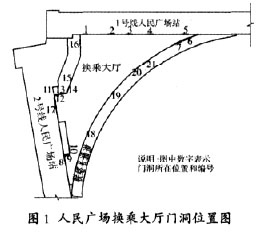 地下连续墙大面积微损开洞施工技术【摘要】介绍上海地铁人民广场站换乘大厅工程在既有地下连续墙墙体上进行大面积门洞施工时采用的微损开洞技术。施工中,通过理论分析预测和现场实测,优化了施工方案,不仅保证了既有结构的安全,也有效控制了既有结构的各项变形。该项技术不仅适用于轨道交通工程,还适用于其他类型的地下建筑,可提供一定的借鉴作用。【关键词】建筑结构地下连续墙微损开洞技术开洞顺序优化实时监测1 工程概况 上海地铁人民广场站换乘大厅位于上海西藏中路和九江路路口的西南角,介于地铁1号线、2号线和联络长通道之间,并利用其现有轮廓扩大而成,呈三角形,可实现地铁1号线、2号线、8号线三线客流的集中换乘。 人民广场站换乘大厅作为轨道交通三线换乘枢纽,为达到快速便捷的换乘目的,需要在1号线的站厅层、2号线的站厅层、下一层以及联络长通道的800 mm厚地下连续墙上大量开设换乘门洞。门洞数量共计25只,门洞宽度最小1.2 m,最大8 m,高度2.75 m~4.4 m。