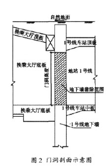 2 难点分析 人民广场站换乘大厅门洞开设数量达25个,宽度最大为8 m,在既有地下连续墙上进行如此大面积、大规模的门洞施工,是相当少见的,施工难度也非常大。再者,在既有结构的地下连续墙上开凿如此大量的门洞,势必将改变其受力性状,结构刚度和整体性能都将大大削弱。而且地铁1、2号线都已开通,车站结构及轨道正处于运营状态,除了要保证开凿门洞的车站结构的安全外,还要严格控制结构及轨道的各项变形在规范许可范围内,施工难度和风险相当大。尤其是地铁1号线车站为单衬墙,自身墙体刚度非常小,开设如此数量的门洞对既有车站结构影响相当大。