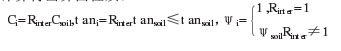 PLAXIS程序中用Rinter弹塑性模型中模拟土-结构相互作用的界面的性状,若φi和ci分别为界面的摩擦角和内聚力(粘着力),按如下规则由相应的岩土性质和强度折减因子,计算得出界面性质: