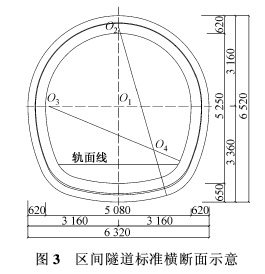 区间隧道开挖断面高度为6.52m,开挖宽度为6.32m,隧道断面接近圆形,充分考虑了合理受力的因素。1·5 工程特点 1)工程环境复杂,管线众多 本标段地处沈阳市老城区,地下管线纵横交错,且老化严重。主要有污水、雨水、自来水、煤气、电信电缆等各种管线,而其中1937年修建的砖砌污水暗渠方沟,纵穿于右线隧道正上方,对隧道开挖产生着直接的影响。暗渠底部埋深3.8m,隧道拱顶埋深16m,暗渠断面尺寸为0.9m(宽)×1.8m(高),施工年代久远,渗漏严重,在施工时必须采取加强处理措施。
