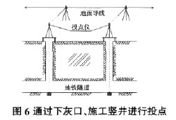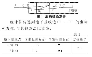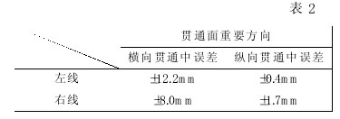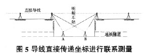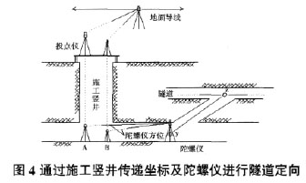 2.4 投点定向法 该方法利用车站两端的下料口、出土井等,采用垂准仪或垂线直接将坐标传递到隧道内, 作为地下坐标起算数据, 如果需要所投测点作为起算方位, 则相邻两点须通视。另外, 当隧道贯通距离较长时, 为控制隧道掘进的方向误差, 对浅埋隧道可在地面钻一孔, 将坐标直接传入地下隧道内,加强平面位置与方向的控制。此方法精度最优。