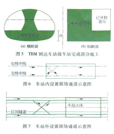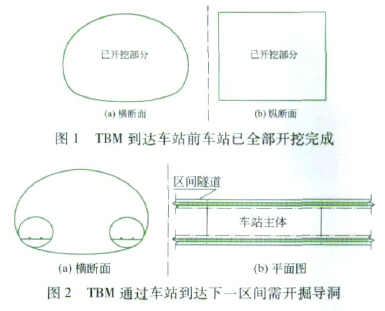 2.2 先洞后站 先洞后站是指在TBM施工到车站时,车站完全未施工。这种情况可能出现在TBM施工通过的第一个车站或前几个车站及车站扩挖出工作面以后,其工况和“TBM到达车站前车站完成部分施工”的情况相同(见图10~图11)。