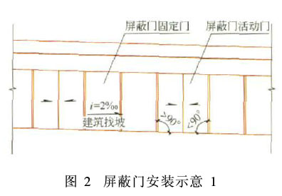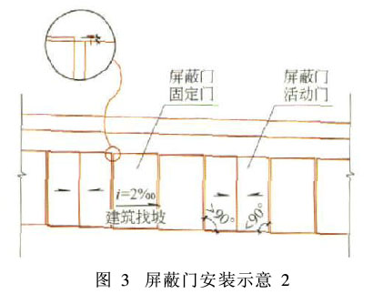 或者使用屏蔽门框与门框做锯齿状排列而消除坡度引起的高差,如图3所示。