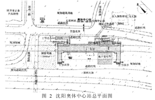2 地铁车站布设与设计应遵循的原则 (1)车站布设应方便乘客使用,地铁车站的站位应该为乘客提供最大可能的方便,使多数乘客步行的距离最短。 (2)尽量通过短的出入口通道,将旅游景点、游乐中心、住宅密集区、办公密集区等与车站相通,为乘客提供无太阳晒、无雨淋的乘车条件。 (3)对于突发性的大型客流集散点,如大型的体育场一般只有突发性的客流,地铁车站的位置不宜离得太近,防止集中客流对地铁车站的冲击,车站出入口离开体育场出入口一般在300m以上,若是突发性客流的强度较大,距离还应该设置得更大一些,如沈阳地铁二号线的奥体中心车站距离奥体中心体育馆出口约为800m。 (4)车站布设应与城市道路网及公共交通网络密切结合,应符合轨道交通网络规划和城市总体规划的要求,应与城市总体规划和车站所在地区的城市规划相互协调,如沈阳地铁二号线的奥体中心车站的2号出入口就距公交车站新华社站距离大约为50m,地铁路线的密度和车站的数目均比不上地面公交线路网,必须依托地面公交路线网络,使其能最大限度地吸引客流,为地铁车站往返运输乘客,使地铁成为快速大运量的骨干交通动脉,一般将地铁车站设在道路交叉口,公交路线在地铁车站周围设置车站,方便公交和地铁之间的换乘。 (5)车站布设应与旧城改造和新区土地的开发相结合,车站分布应方便施工,减少拆迁,降低造价,并注重城市轨道交通建设与周边经济发展的互动效应,为可持续发展创造条件。换乘站在结合周围环境特点布置站位的时候,不仅需要考虑近期车站的功能实施,还须兼顾远期站位换乘方案的便捷和远期实施的可操作性,并应根据远期客流要求,工程分期实施的条件,合理选择车站型式、换乘方式及控制近、远期车站建设规模,使近期车站的方案具备最大化的适应性和合理性。 (6)车站分布应兼顾各个车站间距离的均匀性,乘客到大型的商业区购买物品,要货比三家,一般不计较时间和步行距离,地铁车站站位距离商业区中心不超过500m就可以了。 (7)车站设计规模应根据远期高峰小时预测客流集散量和车站行车管理、设备用房的需要来确定,要与站厅、站台、出入口通道、楼扶梯以及售检票等部位的通过能力相匹配,同时满足事故发生时乘客紧急疏散的需要,超高峰系数根据车站规模及周边用地情况所决定的客流性质不同分别取1.1~1.(见图2)。