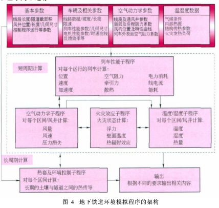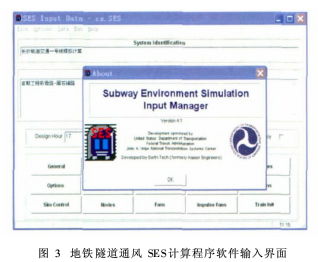 2.2 隧道通风系统设计方法 隧道通风系统分为区间隧道通风系统和车站隧道通风系统两部分,列车正常运营时系统排除隧道内的余热余湿,从经济节能的角度,应充分利用列车运行产生的活塞风排热和降温隧道内气温。由于列车运行向隧道内散发大量的热,如不采取有效的通风措施,隧道内的温度将随地铁运营年限的增长不断升高,终将导致隧道内温度超过正常运营的要求。在正常运行工况下,当隧道尺寸、列车外型尺寸、列车牵引特性、客流、列车编组、行车组织等条件确定后,活塞风道设置的位置、数量和大小是决定活塞通风效果的关键因素。目前,国内多条设置屏蔽门隧道通风系统均采用SES模拟计算软件(见图3),输入隧道尺寸、列车外型尺寸、列车牵引特性、客流、列车编组、行车组织等条件(见图4),通过假设活塞风道设置的位置、数量和大小,经过反复试算,对系统配置进行优化比较,最后确定满足所有系统功能的合理系统配置(包含土建设施配置和隧道通风系统设备配置),以及最有效的运行模式(包括本系统设备的模式组织和与其他机电系统的接口配合),以保证列车的正常运行、阻塞运行和火灾运行所必需的环境条件。