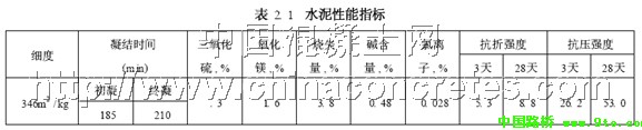 2. 1 水泥:选用冀东水泥厂生产的盾石牌P. O42. 5级低碱水泥,性能指标见表2. 1