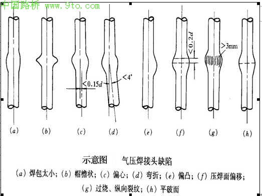 a. 镦粗直径不够(墩粗直径小于钢筋的1.4倍);原因,加热温度低,或加压不够。