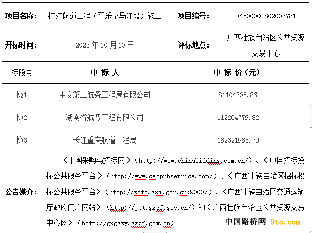 招标人:广西壮族自治区港航发展中心桂江航道工程建设指挥部