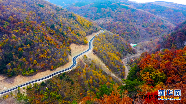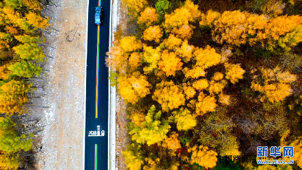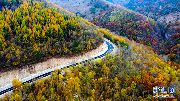 高空俯瞰,公路两旁色彩斑斓。新华网 发(程广 摄)