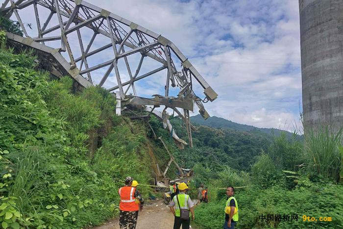 这是8月23日在印度米佐拉姆邦首府艾藻尔附近拍摄的发生坍塌事故的铁路天桥。新华社/法新
